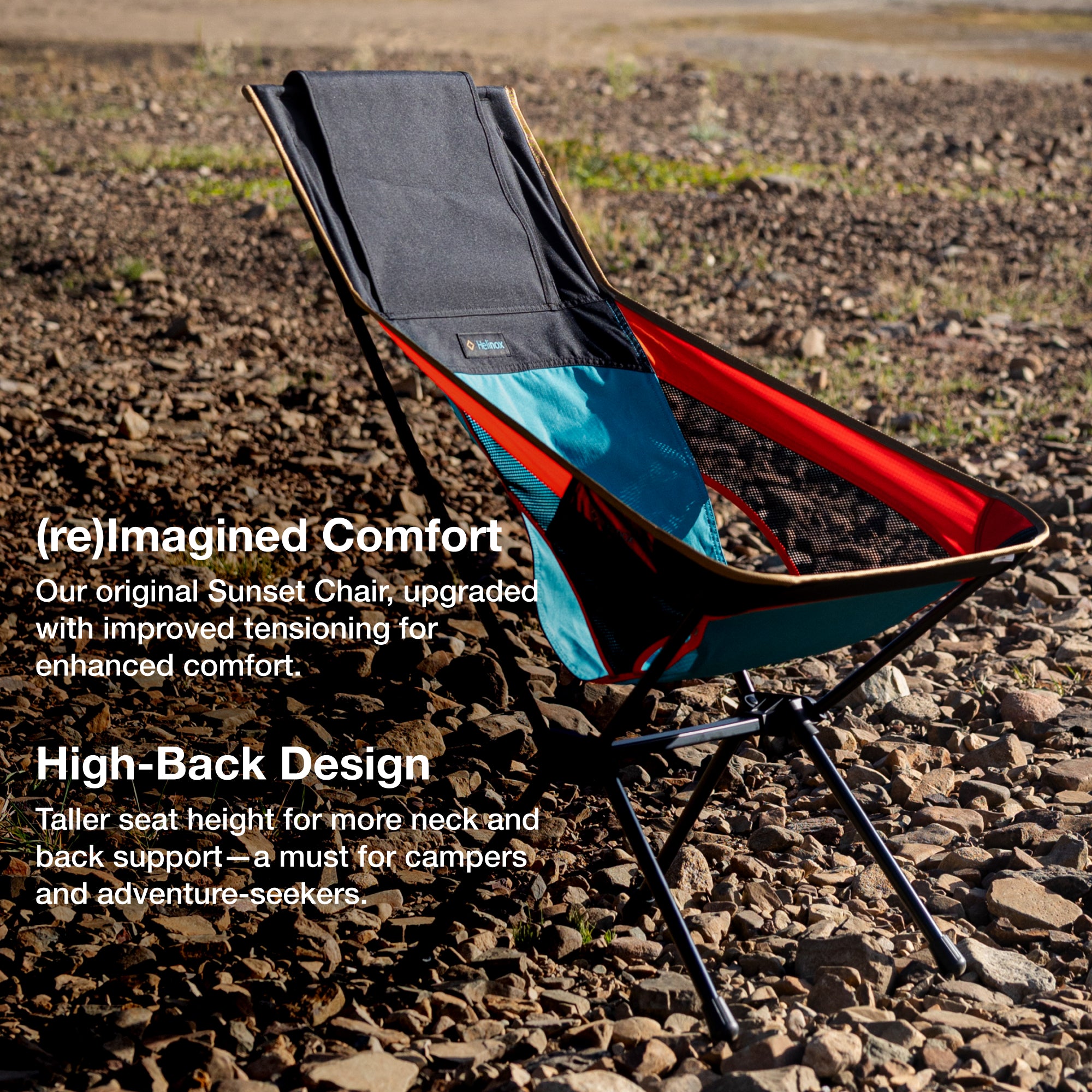 A reimagining of our original Sunset Chair, now upgraded with (re)Tension Design to set a new standard for outdoor comfort. It sits high off the ground so it’s a breeze getting in and out, plus the supportive high-back design makes it a must for campers, glampers, and picnickers to take just about anywhere.